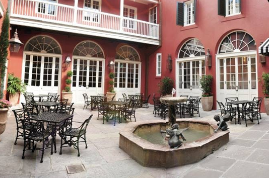 Rising above Bienvilles and encircling the courtyard, the St. Charles Club offers an exclusive Members Only retreat. This refined second-floor sanctuary features a stately bar and elegant dining tables with sweeping views into the glass-enclosed courtyard below.